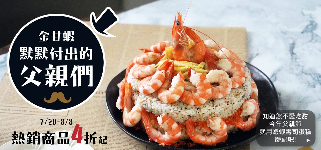 父親節特賣|一起做蝦蝦蛋糕慶祝吧!PRODUCTS產品介紹嚴選銀鮭厚切片330g(3片組)418巴掌大草蝦5尾入352智利(半肩身)帝王蟹腳(900g/副)2,700鮮凍鳳尾開背白蝦仁900葉門活凍龍蝦(2尾組)1,700剖半手臂大龍蝦加送大比目魚厚切1,000馬來肥美軟殼蟹(2盒組)1,350日本生食級大干貝M(2盒入)5100特大肥美日本廣島牡蠣(3包組)1800美國超級牛排450g418